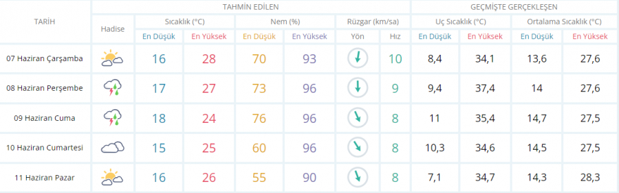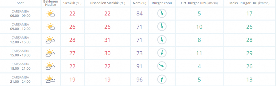 Şehir genelinde gün içerisinde termometreler 28 dereceye kadar tırmanırken az bulutlu ve güneşi gökyüzü etkili oluyor. Öte yandan yarın ve cuma günü için ise sağanak yağış uyarısı gelirken hafta sonu ise yağış şehri terk etmiş olacak.