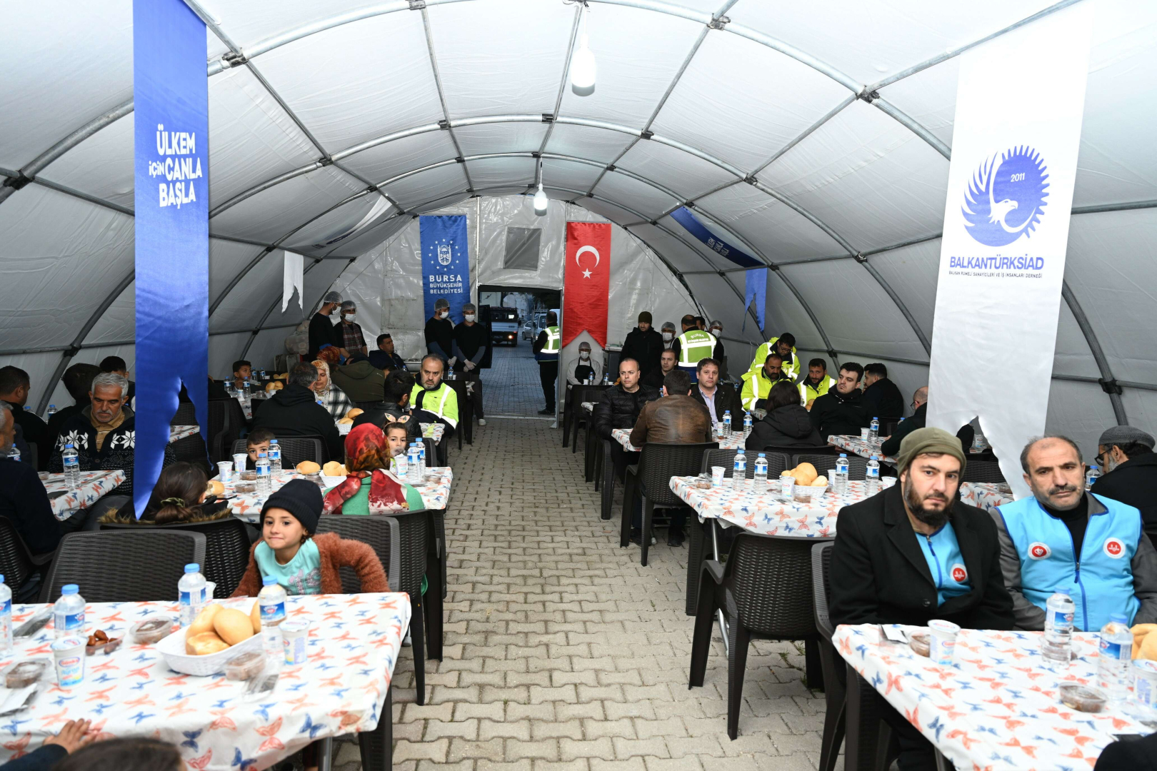 Bursa Büyükşehir Belediyesi, Bursalı hayırseverlerin de katkılarıyla Hatay’da 3 ayrı noktaya kurduğu iftar çadırlarında her gün 2 bin kişiye iftar ve sahur yemeği veriyor.