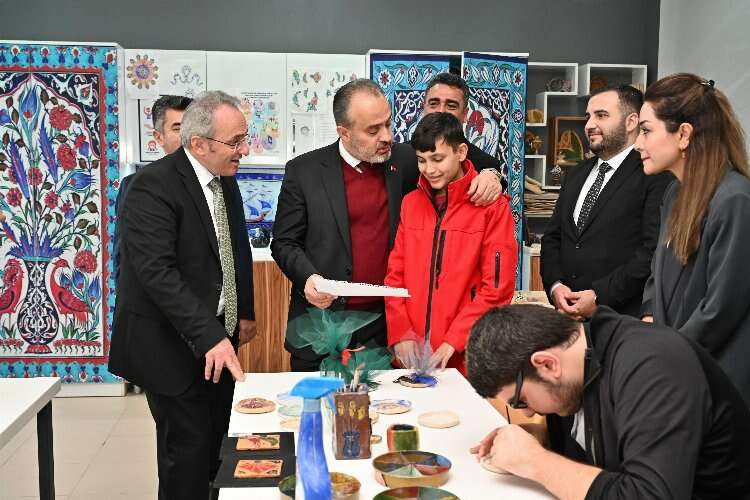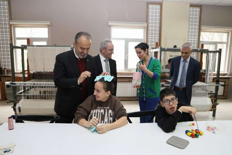 Bursa Büyükşehir Belediye Başkanı Alinur Aktaş, Mehmet Torun Aziz Torun Özel Eğitim Uygulama Okulu’nda eğitim gören özel öğrencilerle bir araya geldi. Okulun dokuma, el sanatları ve seramik atölyelerini gezen Başkan Aktaş, üretimde yeteneklerini gösteren özel öğrencilerle sohbet etti.