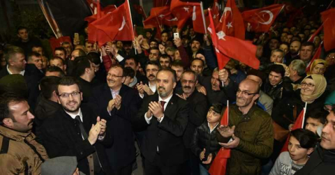 Bursa Büyükşehir Belediye Başkanı Alinur Aktaş, Millet Mahallesi'nde coşkulu kalabalık tarafından alkışlar ve tezahüratlarla karşılandı.
