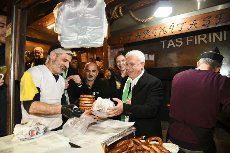 CHP Bursa İl Başkanı Nihat Yeşiltaş, Osmangazi Belediye Başkan Adayı Erkan Aydın ve Yıldırım Belediye Başkan Adayı Mehmet Önder Mutlu ile kalabalığı selamlayan Bozbey, vatandaşlara simit ikramında bulunduktan sonra Bursalılarla tek tek hatıra fotoğrafı çektirdi.