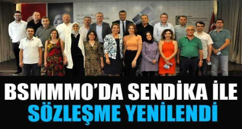 Doğan Yılmaz başkanlığındaki BSMMMO Yönetim Kurulu ile Oda Denetleme ve Haksız Rekabetle Mücadele Kurulu üyelerinin katılımıyla gerçekleşen toplu iş sözleşmesi imza töreninde, TEZ-KOOP-İŞ Sendikası Bursa Şube Başkanı Bülent Çetin ve Oda personelleri de hazır bulundu. Oda hizmet binasında gerçekleşen imza töreninde konuşan BSMMMO Başkanı Doğan Yılmaz, “Sözleşme görüşmelerini ortak anlayış ve hoşgörü çerçevesinde kısa süre içerisinde gerçekleştirmiş bulunuyoruz. Bu süreçte emeği geçen herkese teşekkür ediyor, üç yıl geçerli olacak sözleşmenin Odamıza ve Odamız çalışanlarına katkı sağlamasını temenni ediyorum” dedi.