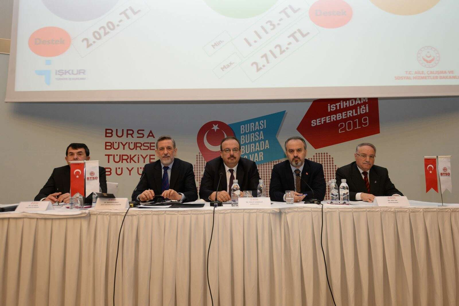 Bursa Ticaret ve Sanayi Odası (BTSO) Yönetim Kurulu Başkanı İbrahim Burkay, Bursa iş dünyası olarak 2019 yılında 120 bin kişilik ilave istihdam hedefi belirlediklerini belirterek, “Ülkemizin refah seviyesini yükseltmek ve daha güçlü bir geleceğe taşımak, insanımıza aş ve iş fırsatı oluşturmakla mümkündür. Türkiyemizin moral ve motivasyon kaynağı Bursa, istihdama da en fazla katkı sağlayan şehirlerden biri olacaktır” dedi.