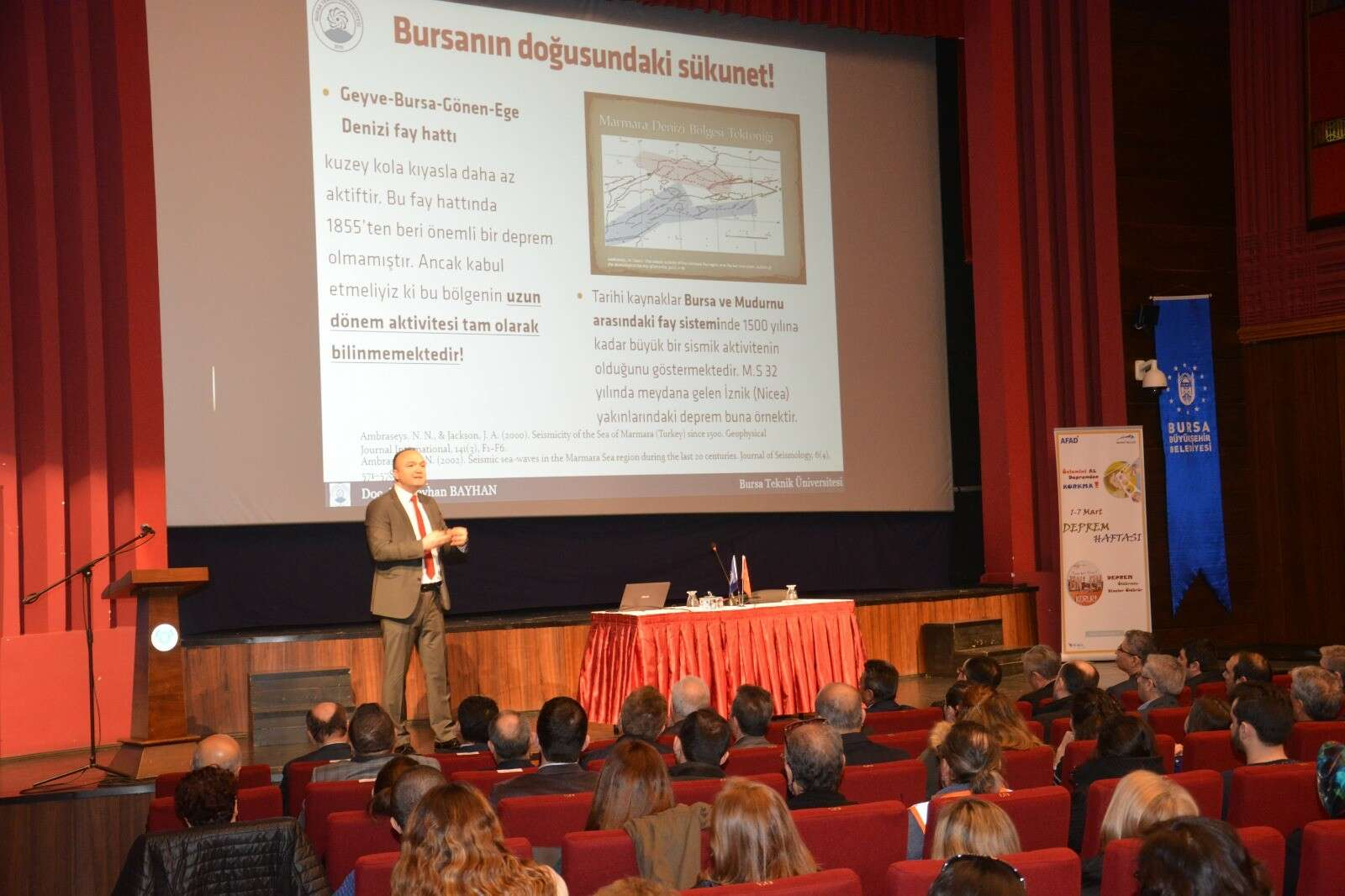 Bursa'da 1-7 Mart Deprem Haftası etkinlikleri kapsamında Bursa AFAD İl Müdürlüğü tarafından hazırlanan "Bursa ve deprem gerçeği" konferansı büyük ilgi gördü.