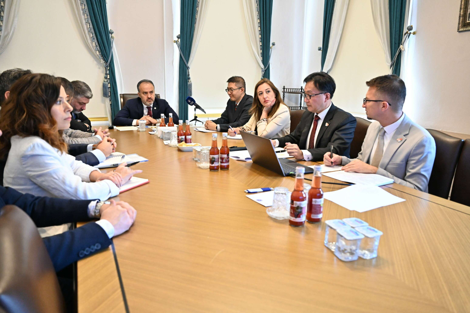 JICA Türkiye Başkan Yardımcısı Jun Yamazaki, JICA Uzman Ekip Takım Lideri Shinichi Fukasawa, JICA Afet Risk Azaltımı Proje Sorumlusu Aylin Çelik ile JICA Uzman Ekip Sekreteri Onur Özge, sunum için Bursa Büyükşehir Belediye Başkanı Alinur Aktaş ile bir araya geldi. Toplantıda, bir depreme karşı hasar riski yüksek alanların belirlenmesi, kentsel yapı/binaların hasar görebilirlik analizinin yapılması, hasar görebilir kentsel yapı ve binaların güçlendirilmesi veya yeniden yapılmasına yönelik öneriler sunulup, fikir alışverişinde bulunuldu.