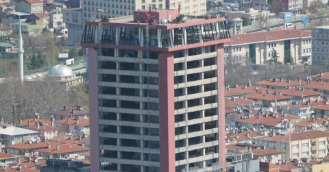 Bursa'da, 20 yılı aşkın süredir ruhsat sorunu nedeniyle boş duran ve yıkılma riski olduğu belirlenen Tower Plaza'nın tıraşlama yöntemi ile yıkım çalışmalarına başlandı. Yıkımı üstlenen yüklenici firma görevlileri, bina içindeki asma tavanlar, kapı, pencere, havalandırma sistemi gibi tesisatları söktü.