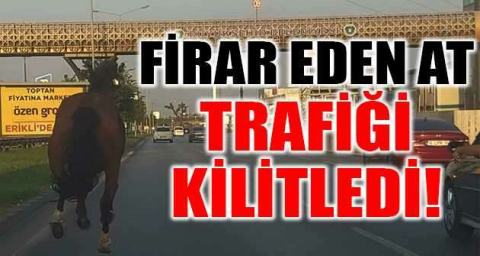 Sahipsiz başıboş atın yola çıkması sürücüleri çileden çıkardı. Atın hızla koşmasını kaydeden sürücüler şaşkınlıklarını da gizleyemedi.