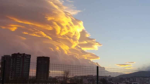 Bursa'da etkili olan lodos hayatı olumsuz etkilerken, şehrin kuzeyinde bulutlar sabahın erken saatlerinde evinden çıkan vatandaşların ilgisini çekti.