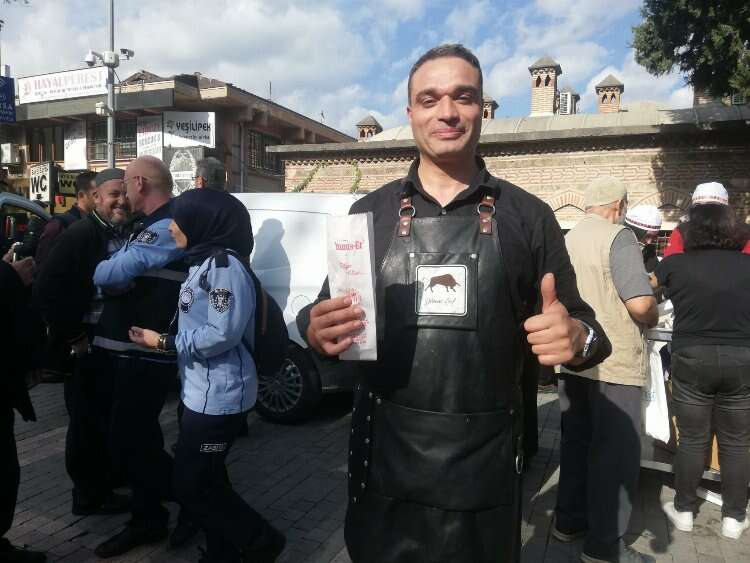 Bursa Ulu Cami'de bir et firması tarafından yapılan dürüm ikramı sırasında vatandaşlar tezgaha hücum edince izdiham meydana geldi. Arada kaynak yapmaya çalışan vatandaşlara sırada bulunan vatandaşlar tepki gösterdi ve aralarında tartışma çıktı.