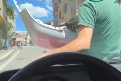 Bursa'da kaputun üzerine oturan kişi, elinde tuttuğu tampon ile seyahat etti. Görenlerin yürekleri ağza gelirken, o anlar sürücü tarafından kaydedildi.