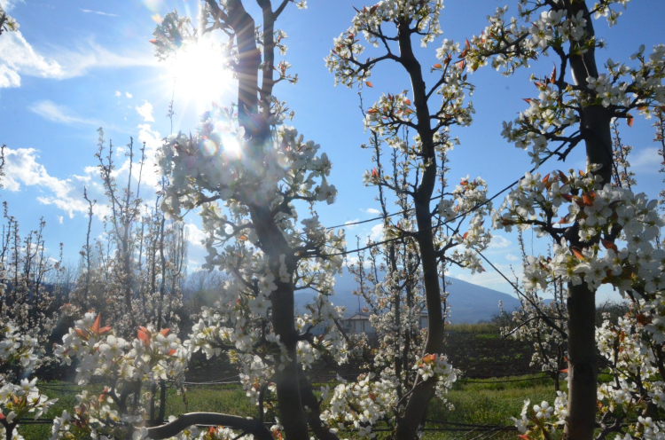 Özellikle kırsal mahallelerde yoğun olarak bulunan meyve bahçeleri, adeta gelinlik giymiş gibi bembeyaz bir örtüye bürünürken, ortaya kartpostallık manzaralar çıktı. Havaların ısınmasıyla birlikte çiçek açan ağaçlar, hem üreticilere yeni sezonun umutlarını yeşertti hem de doğaseverlerin ilgisini çekti.