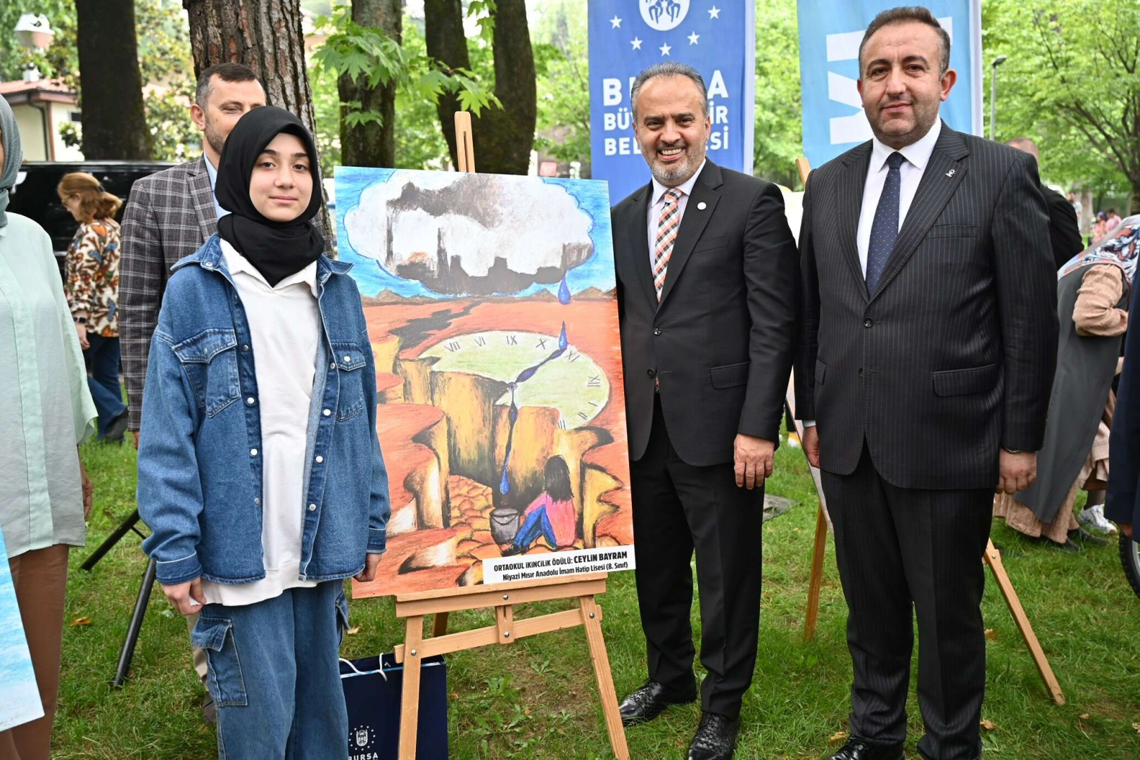 İlkokul kategorisinde; birinciye tablet, ikinciye bisiklet, üçüncüye scooter, mansiyon alan 3 kişiye de bluetooth kulaklık, Ortaokul kategorisinde ise; birinciye dizüstü bilgisayar, ikinciye bisiklet, üçüncüye drone, yine mansiyon alan 3 kişiye de bluetooth kulaklık hediye edildi. Küçük ressamlar ödüllerini Başkan Aktaş ve İl Milli Eğitim Müdürü Seyit Ali Büyük, BUSKİ Genel Müdürü Güngör Gülenç ve AK Parti İl Başkan Yardımcısı Gökhan Yıldız’ın elinden aldı.
