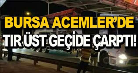 Kaza, Bursa’nın Osmangazi ilçesine bağlı Acemler mevkiinde meydana geldi. Edinilen bilgiye göre 34 JR 3450 plakalı tırın dorsesinde bulunan vinç üst geçite çarptı. Meydana gelen kazada diğer sürücülerin ihbarı üzerine olay yerine polis ekipleri sevk edildi. İnatçı şöför üst geçite birdaha vurarak geçmeye çalıştı. Durumu gören çevredeki vatandaşlar şaşkın gözlerle olan biteni izlediler. Kazada yaralan olmazken tır şoförü ana yolda ve akan trafikte geri geri giderek tehlike oluşturdu. Kaza nedeniyle yolda uzun araç kuyrukları oluştu. Yolun açılması için dorsenin üstünde bulunan kamyonun ve tırın tekerlek havaları indirilerek üst geçitin altından geçti. Polis ekipleri sürücüye ceza yazdıktan sonra tır otoparka çekildi.