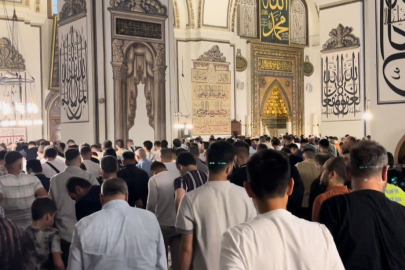 Bursa'da Ulu Cami bayram namazına gelenlerle doldu. İçeride yer bulamayan vatandaşlar namazlarını avluda kıldı.