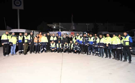 Usta, koordinasyon merkezinden ayrılmadan önce Büyükşehir’in saha ekibiyle hatıra fotoğrafı da çektirdi.