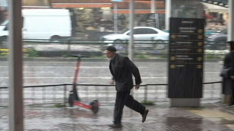 Ansızın bastıran yağışa hazırlıksız yakalanan vatandaşlar korunaklı alanlarda yağmurun dinmesini bekledi.