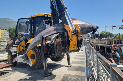 Deniz polisi tarafından yapılan çalışmada, Kumla açıklarında fark edilen ölü yunus balığı ekskavatörle kamyona yüklendi. Çıkarılan yunus da, programın düzenlendiği Gemlik İskele Meydanına getirilerek, incelemelerin yapılması için, Gemlik Belediyesi Sağlık İşleri Müdürlüğü ekiplerine teslim edildi.