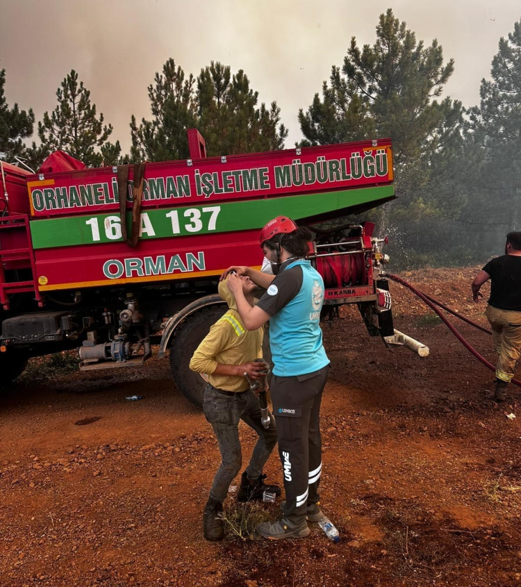 Bursa’da geçtiğimiz günlerde birçok noktada çıkan orman yangınlarında, yangın söndürme ekiplerinin mücadelesi kadar sağlık ekiplerinin özverili çalışmaları da damga vurdu. Yangın süresince 3 noktada kurulan sahra hastanesinde 73 UMKE (Ulusal Medikal Kurtarma Ekibi) personeli görev yaparken, 350’ye yakın vatandaşa tıbbi müdahalede bulunuldu.