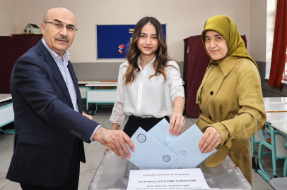 Bursa Valisi Mahmut Demirtaş oyunu ailesi ile birlikte Hamzabey Ortaokulu'nda kullandı.