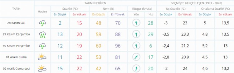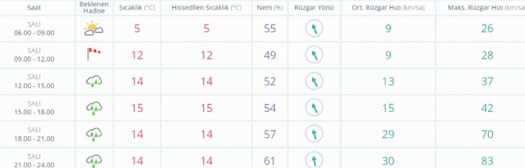 Haftanın üçüncü iş gününde (YARIN) sabah saatlerinde buz kesen termometreler 13 derece olarak ölçülürken gün içerisinde çok bulutlu gökyüzü ve kuvvetli sağanak yağışla birlikte 20 derece seviyelerinde ölçülecek.