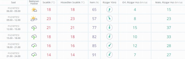 Parçalı ve çok bulutlu, aralıklı ve yerel olmak üzere sağanak ve gök gürültülü sağanak yağışlı geçeceği tahmin ediliyor. Yağışların, öğle saatlerinden sonra yer yer kuvvetli olması bekleniyor.