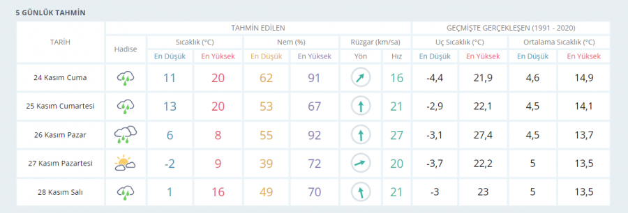 5 GÜNLÜK HAVA DURUMU TAHMİNİ