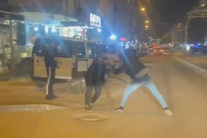 Bursa’da iki grup arasında çıkan tartışma caddeye taştı. Tarafların birbirine tekme ve yumruklarla vurdukları anlar kameraya yansırken, olayı çevredekiler güçlükle ayırdı.