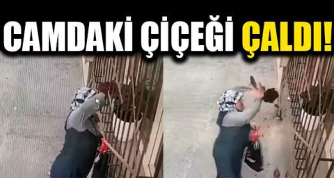 Bursa'da, yaşlı bir kadının, camın önündeki çiçeği saksıdan sökerek çaldığı anlar kameralara yansıdı.