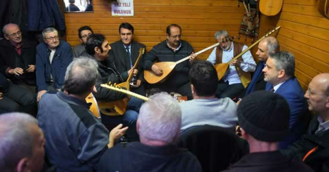 Osmangazi Belediye Başkanı Mustafa Dündar, tarihi çarşı ve hanlar bölgesine yaptığı ziyarette seçim çalışmalarına mola vererek, Aşıklar Kahvesi’ne girdi. Dündar, aşıklarla birlikte türkü söyledi.