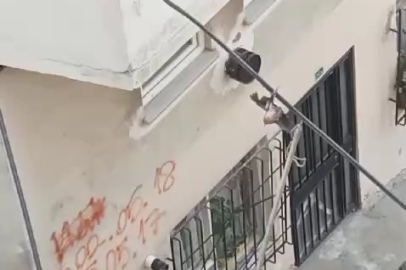 Elektrik kablosunda asılı olan kuşu itfaiye ekipleri kurtardı
