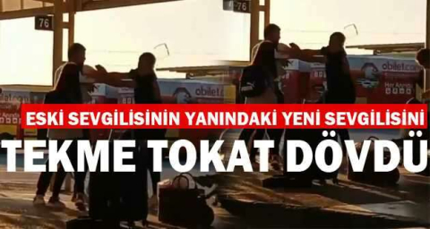 Bursa’da bir genç şehirlerarası otobüs terminalinde gördüğü eski sevgilisinin yanındaki yeni sevgilisini tekme tokat dövdü. O anlar cep telefon kamerasına yansıdı.