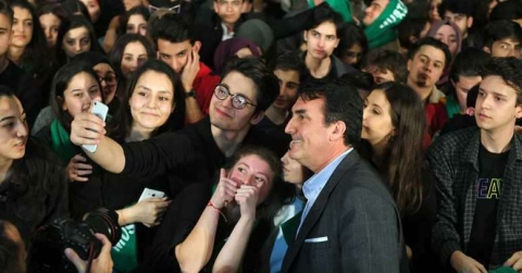 İlk kez oy kullanacak gençlere seslenen Osmangazi Belediye Başkanı Mustafa Dündar, “Sizlerin ilk kez oy kullanacak olmanızdaki heyecanını gözlerinizden görebiliyorum. Osmangazi biziz, gelecek biziz. Hep birlikte Bursa’ya sahip çıkacağız. Sizler, ilk kez yönetime katılacaksınız. Seçimlerde geleceğinize oy vereceksiniz” dedi. Başkan Dündar, daha sonra gençlerin arasına karışarak cep telefonuyla özçekim yaptı.