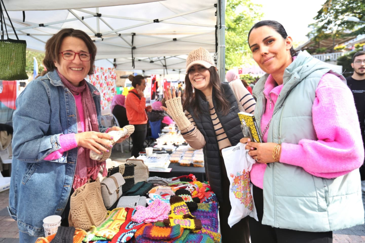 Bu tür etkinliklerin kadınların ekonomiye katılımı ve çalışmalarının tanıtımı açısından büyük önem taşıdığını vurgulayan dernek ve kooperatif temsilcileri, kadınlara her alanda ve her zaman destek veren Büyükşehir Belediye Başkanı Mustafa Bozbey’e teşekkür etti. Bursa Kent Konseyi Sağlık Çalışma Grubu da Büyükşehir Belediyesi’nin 1-31 Ekim Meme Kanseri Farkındalık Ayı etkinlikleri kapsamında alanda yerini aldı. Tıp fakültesi öğrencilerinden oluşan genç sağlıkçılar, bilgilendirme yaparak meme kanserine dikkat çekmek amacıyla pembe renkli kurdele dağıttı. Meydan Kadınların Projesi, kentin farklı noktalarında Bursalılarla buluşmaya devam edecek.
