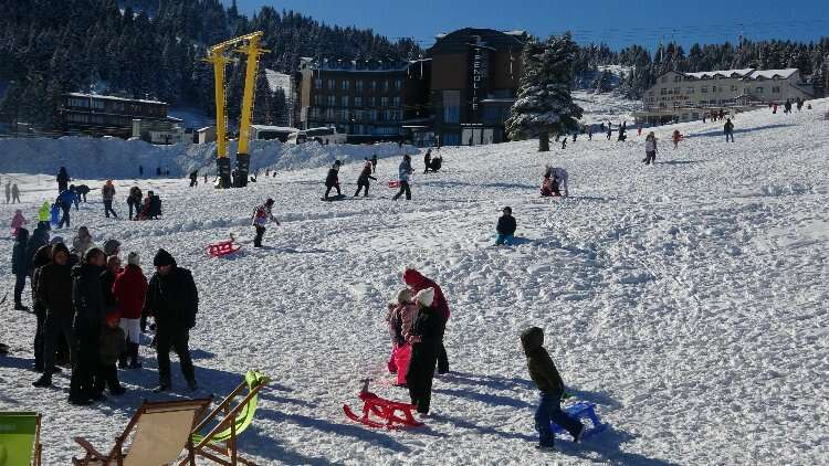 Hatıra fotoğraf çektiren vatandaşlar güneşli havada Uludağ’ın keyfini sürerken, otellerde hareketlilik de arttı.