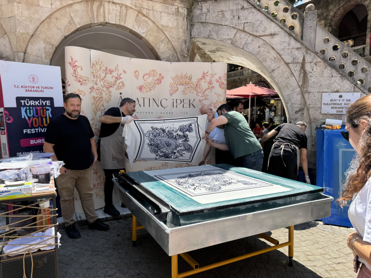 İpek baskı tekniği alanında Türkiye'nin önde gelen markalarından Atınç İpek Yönetim Kurulu Başkanı Mehmet Atınç, düzenlenen etkinlikle ipeğin kozadan itibaren bir kumaşa, ya da aksesuara dönüşene kadar geçirdiği safhaları geleneksel el baskısı yöntemiyle aktarmayı hedeflediklerini ifade etti. Etkinlik çerçevesinde kendi atölyelerinde imal ettikleri masa ve kalıplar aracılığıyla yine kendi stüdyolarında hazırladıkları rengârenk desenleri, saf ipek kumaşa bastıklarını anlatan Atınç, atölye çalışmasının yerli ve yabancı turistlerce beğeniyle izlendiğini söyledi.