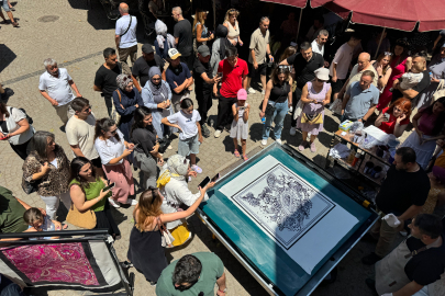 Geleneksel masa baskısı atölye çalışmasında, ustalarla birlikte rakle çeken vatandaşlar, birbirinden güzel desenlerin basıldığı ipek kumaşların kurumasını ve ortaya çıkan görsel şöleni hayranlıkla izledi.
