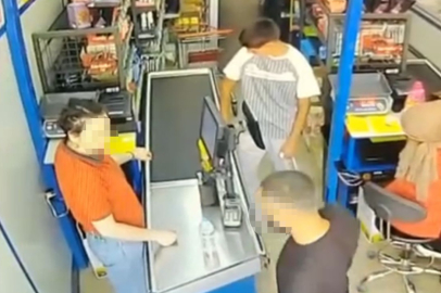 Marketin kadın kasiyerine yumruklu saldırı kamerada