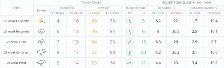 5 GÜNLÜK HAVA DURUMU TAHMİNİ