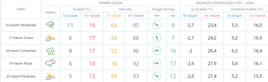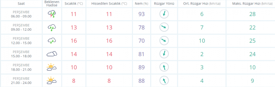 Meteoroloji Genel Müdürlüğü tarafından yapılan son değerlendirmelere göre: Ülkemiz genelinin parçalı ve çok bulutlu, Marmara, Ege, Akdeniz, İç Anadolu, Karadeniz, Doğu ve Güneydoğu Anadolu'nun kuzey ve batısı ile Bitlis çevrelerinin sağanak ve yer yer gök gürültülü sağanak yağışlı geçeceği tahmin ediliyor. Yağışların, Marmara'nın doğusu ve Batı Karadeniz kıyıları ile Ordu ve Giresun çevrelerinde yerel kuvvetli olması bekleniyor.