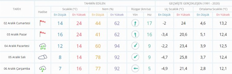 Parçalı bulutlu geçeceği tahmin ediliyor. Gece ve sabah saatlerinde bölgenin iç kesimlerinde yer yer pus ve sis bekleniyor.
