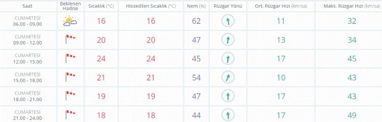 Meteoroloji Genel Müdürlüğü tarafından yapılan son değerlendirmelere göre: Ülkemizin batı kesimlerinin parçalı ve çok bulutlu, Kırklareli çevreleri ile Balıkesir'in batı kıyılarının sağanak yağışlı, diğer yerlerin az bulutlu ve açık geçeceği tahmin ediliyor. Rüzgarın; Marmara ve Kuzey Ege kıyılarında güneyli yönlerden kuvvetli olarak (40-80 km/saat) esmesi bekleniyor. Sabah ve gece saatlerinde iç ve doğu bölgelerde yer yer pus ve sis bekleniyor.