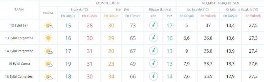 5 GÜNLÜK HAVA DURUMU TAHMİNİ