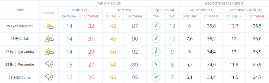 5 GÜNLÜK HAVA DURUMU TAHMİNİ