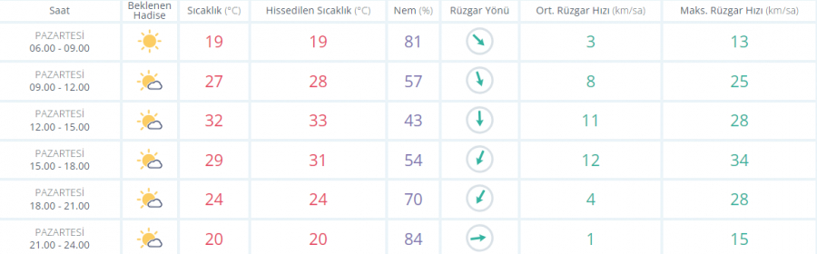 Haftanın ikinci iş gününde (YARIN) sabah saatlerinde hava sıcaklığı 14 derece seviyelerinde seyrediyor. Gün içerisinde parçalı bulutlu ve güneşli gökyüzüyle birlikte termometreler 31 derece seviyelerine kadar tırmanıyor.