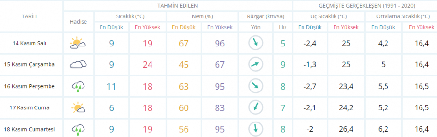 Hafta sonunun ilk gününde ise (CUMARTESİ) sabah saatlerinde 9 derece olarak ölçülürken gün içerisinde termometreler sağanak yağışlı ve çok bulutlu gökyüzüyle birlikte 19 derece seviyelerinde ölçülecek.