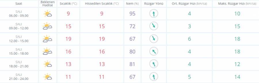 Yeni haftanın üçüncü iş gününde (YARIN) sabah saatlerinde hava sıcaklığı 9 derece seviyelerinde seyrediyor. Gün içerisinde çok bulutlu ve güneşli gökyüzüyle birlikte 24 derece seviyelerine kadar tırmanıyor.