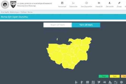 Meteoroloji Genel Müdürlüğü Bursa için sarı uyarıda bulundu.