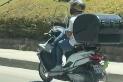 Bursa'da motokurye bacak bacak üstüne atarak trafikte seyretti.