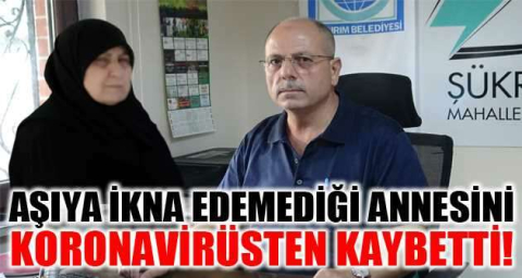 Bursa’nın merkez Yıldırım ilçesinde bir kadın, oğlunun ikna çabalarına rağmen aşı olmadı. Koronavirüse yakalanan Emine Kahraman, 10 gün içinde hayatını kaybetti. Şükraniye Mahalle Muhtarı oğlu Ergün Kahraman; "Aşı ile dolduruşa gelmeyin. Aşı olmamak pahalıya mal oluyor" dedi.
