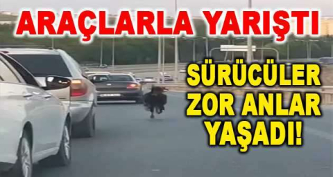 Bursa otobanında araçlarla yarışan keçi bir sürücünün cep telefonu kamerasına yansıdı.
